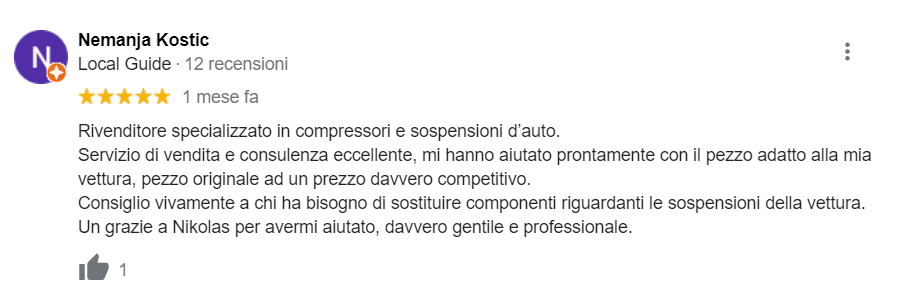 nei sistemi di sospensioni pneumatiche, sempre a disposizione per fornire consulenza e ad aiutarvi a scegliere il ricambio giusto per il vostro veicolo al miglior prezzo possibile.