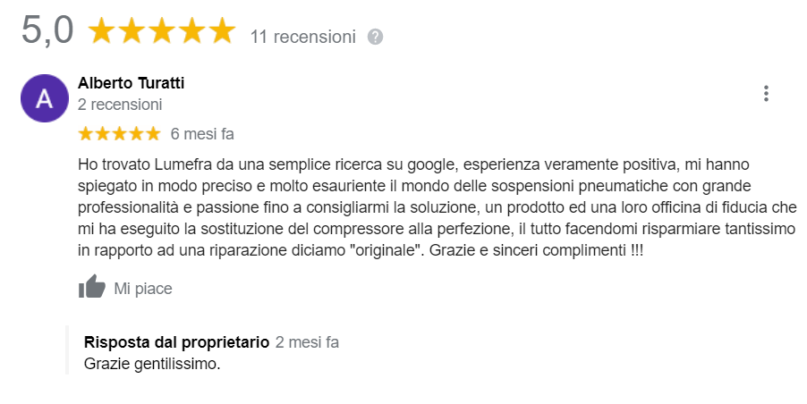 Tutti i nostri prodotti associati ai sistemi di sospensioni pneumatiche hanno una garanzia di 2 anni (per i privati) o 1 anno (per utilizzo con P.IVA).