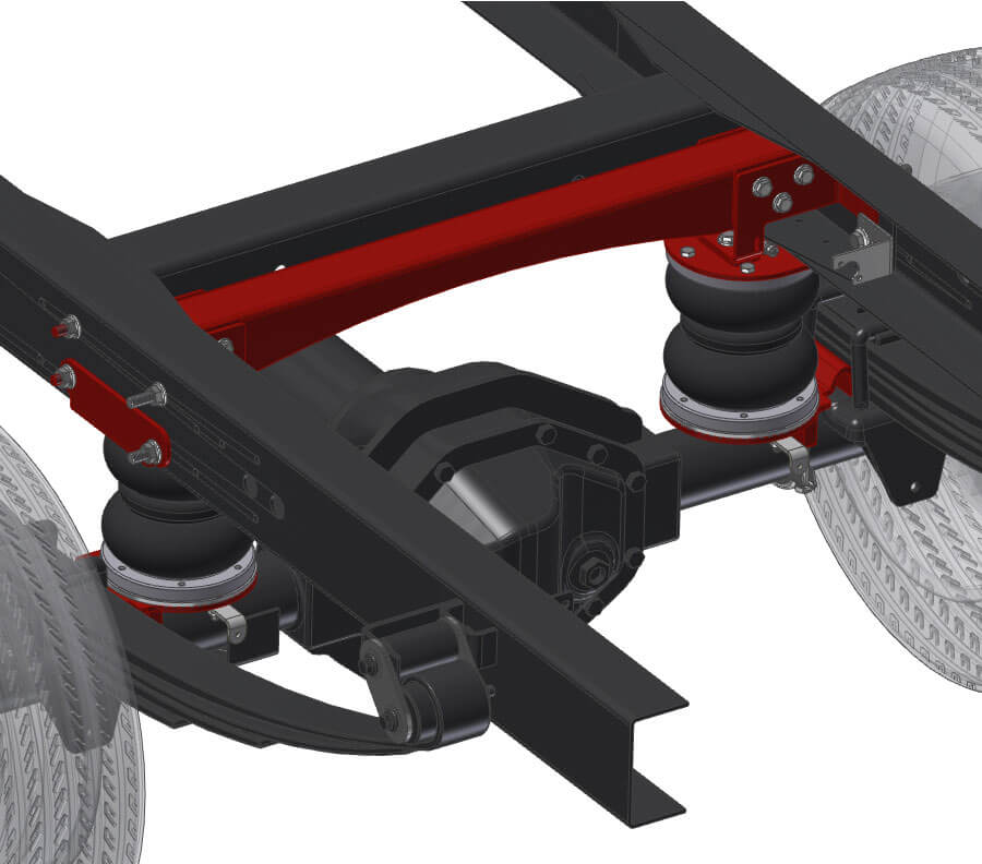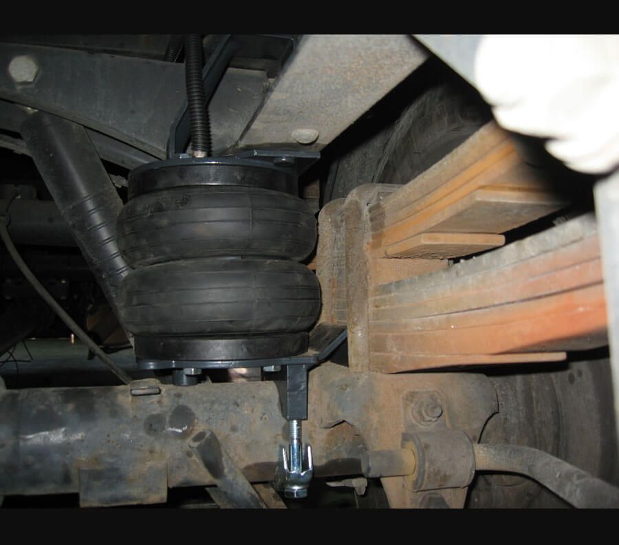 per i veicoli commerciali sono prevalentemente l’applicazione di molle ad aria sull’assale posteriore, interponendosi fra l’assale ed il telaio con l’obbiettivo di minimizzare le vibrazioni dovute dall’urto del tampone di fine corsa, fenomeno inevitabile quando il veicolo è prossimo al limite di carico.
